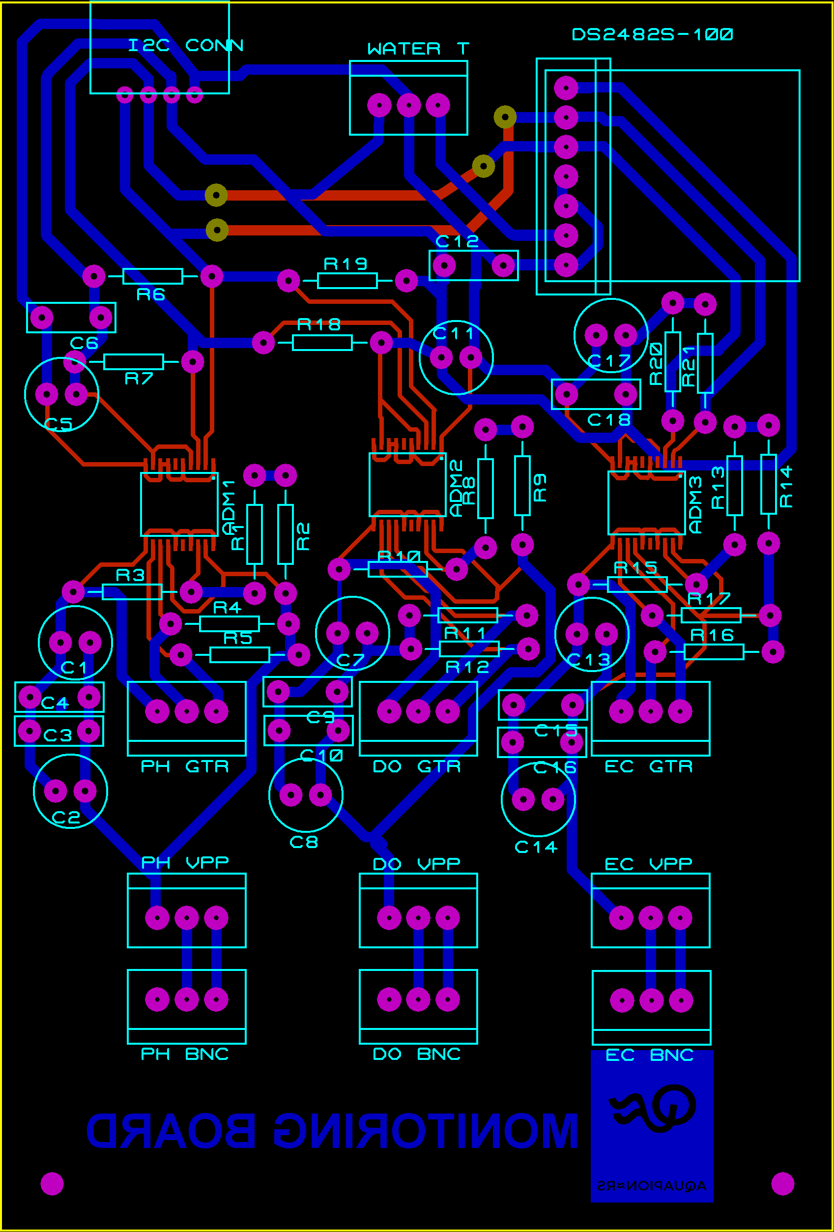 This board have been designed to monitor the water temperature, the pH, the electrical conductivity and the disolved oxygen of an aquaponics system. It is meant to be used with the Smart citizen kit.