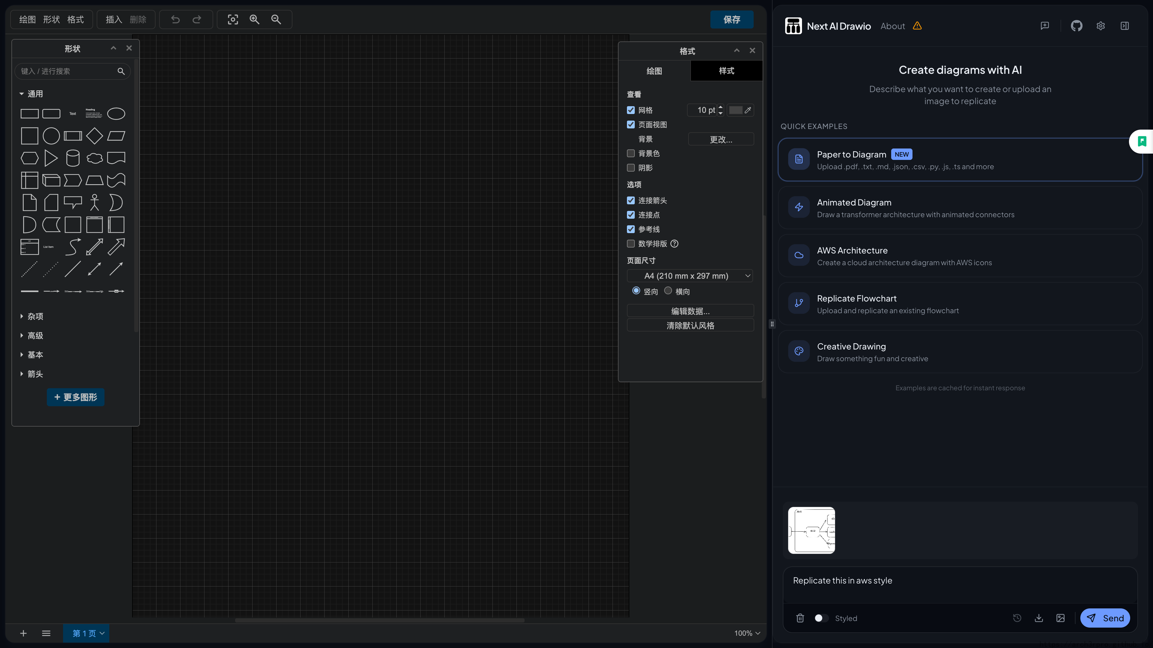 一个集成了AI功能的Next.js网页应用,与draw.io图表无缝结合。通过自然语言命令和AI辅助可视化来创建、修改和增强图表。