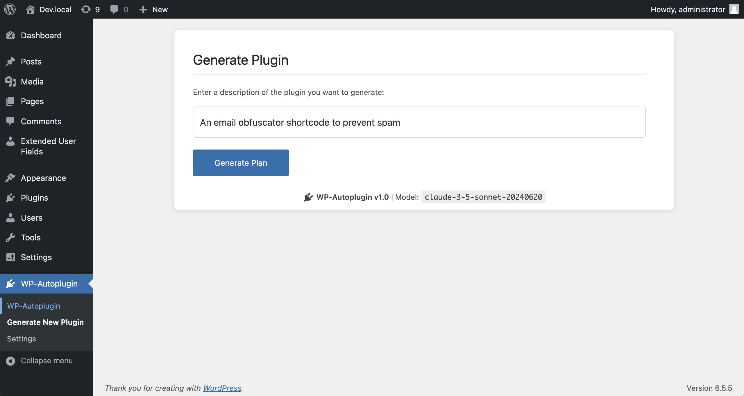 - AI Generation: WP-Autoplugin uses AI to generate a development plan and write the code.