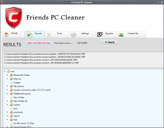 • Saves the number and list of files cleaned in a text file so that user as a log.