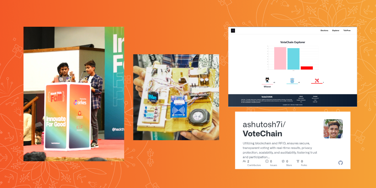 VoteChain is an innovative voting system designed to modernize and secure the democratic process using blockchain, IOT and RFID technologies. By leveraging these cutting-edge tools, VoteChain ensures transparency, security, and efficiency in elections, ultimately enhancing trust and participation in the electoral system.
