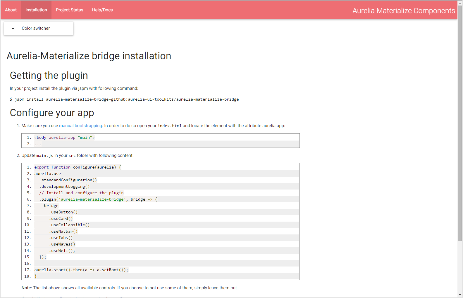 Next, install aurelia-materialize-bridge as described in the installation instructions (Image 3 below):