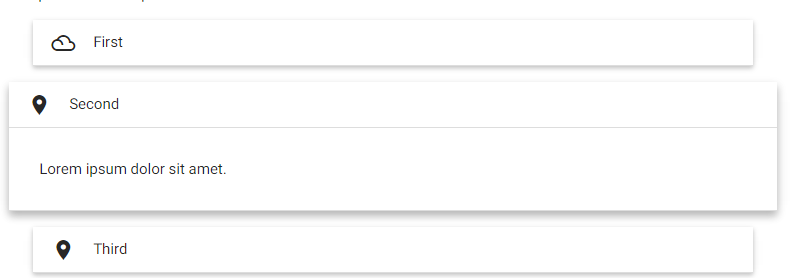 Now, we want to add several (four) additional pages to this application that would show Materialize select, button, slider and collapsible components (the last one shown below rendered in its popout variant):
