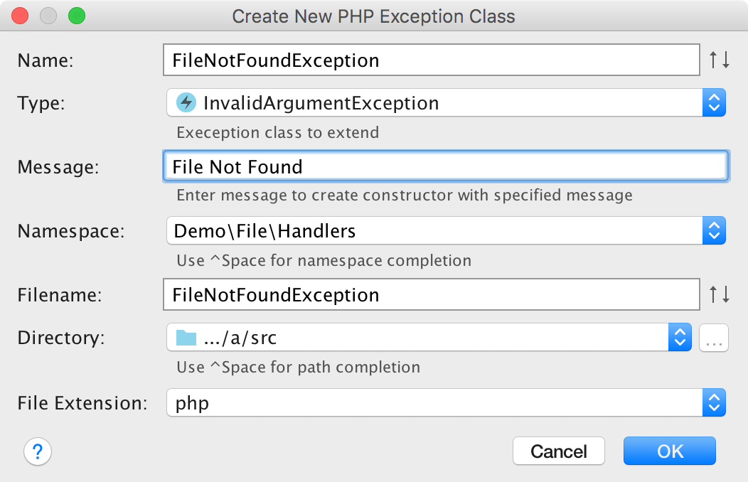 - PHP Exception Class (With selection which Exception Class to extend)