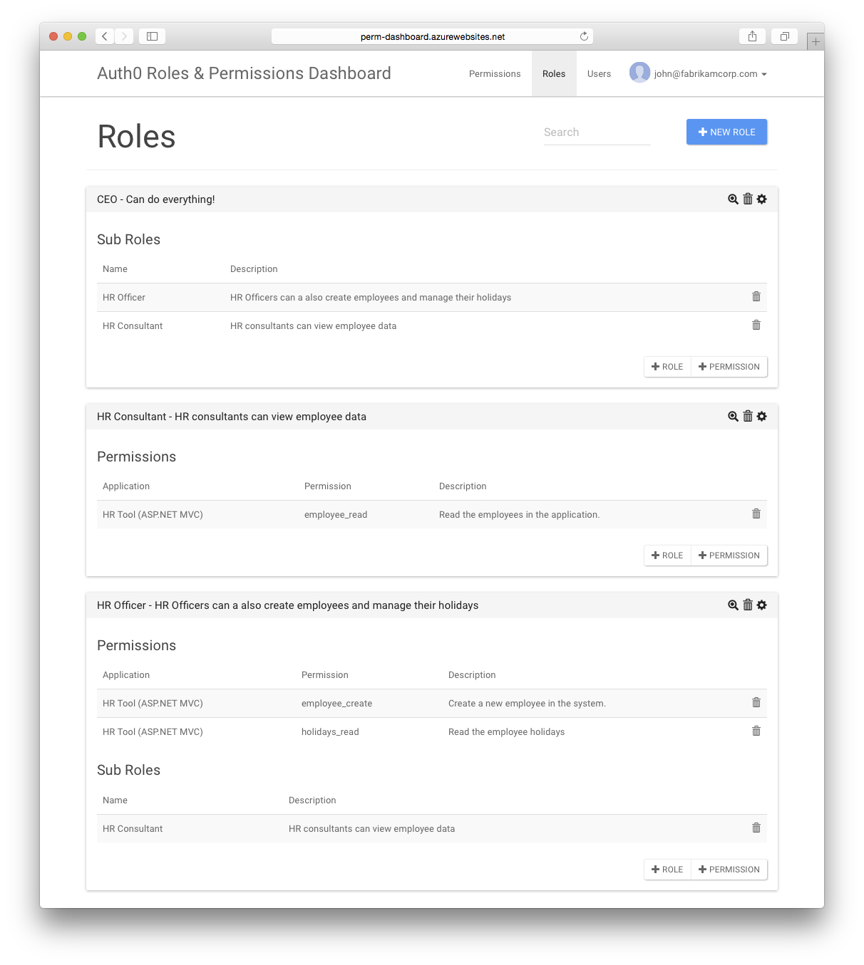 These permissions allow us to specify who can read employee data, create new employees and read holidays. The following roles exist in the organisation: