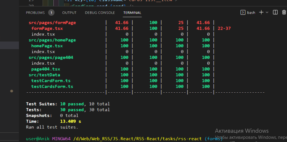 [+] Tests can be run and the test coverage is equal or higher than 50% - 3 points. (in my work 54.6%)