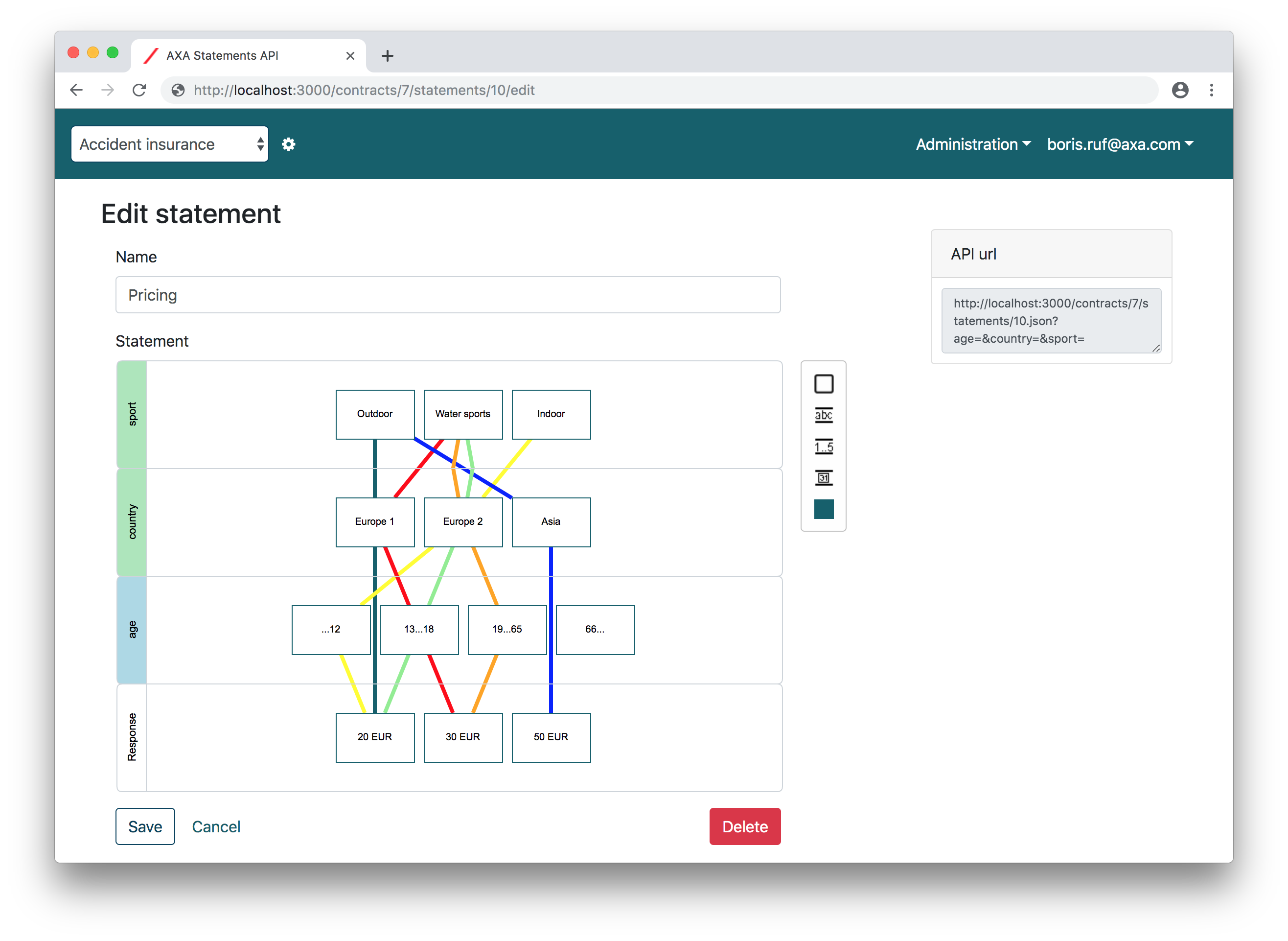 - Intuitive, mxGraph powered user interface to model contract rules (statements)