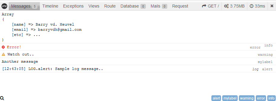 - TwigCollector: For extra Twig info with barryvdh/laravel-twigbridge