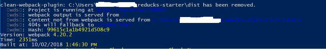 After it's done loading, simply execute npm start and navigate to localhost:8080