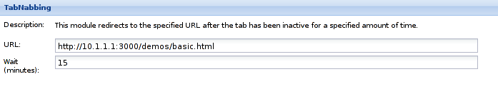 - Objective: This module redirects to the specified URL after the tab has been inactive for a specified amount of time.
