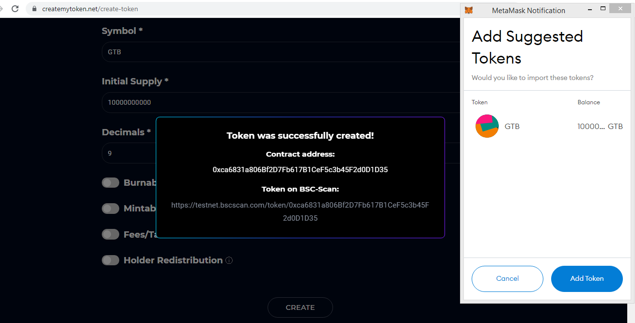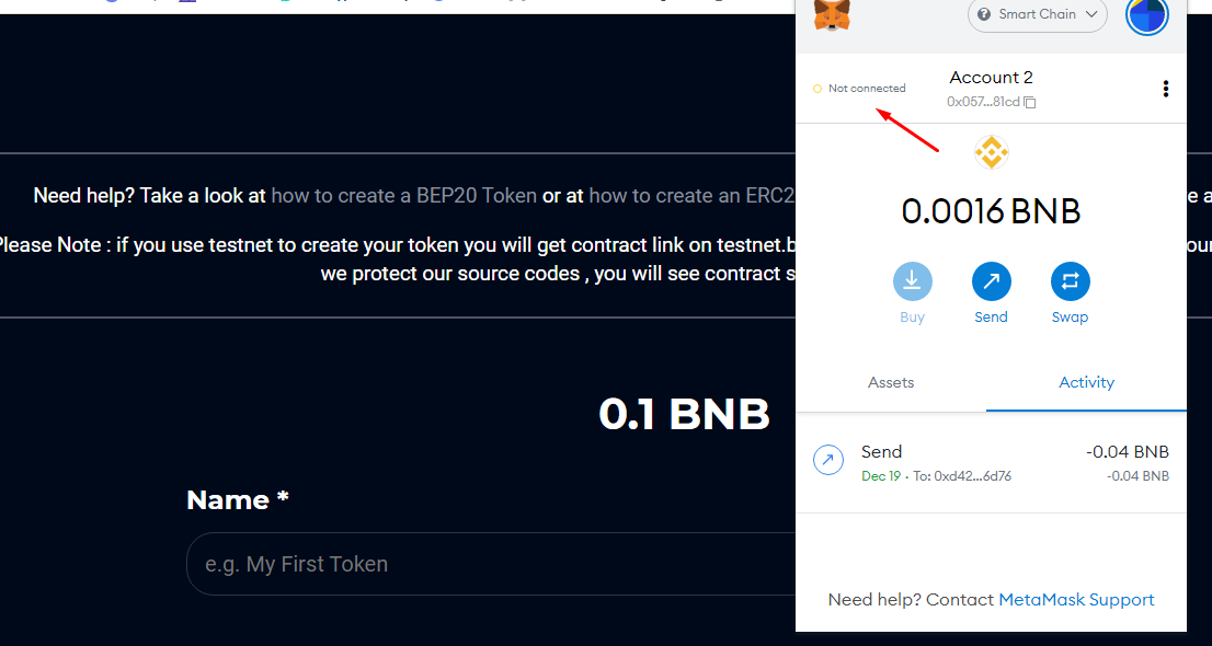 Below we demonstrate the creation of BEP20 Token in Chrome browser