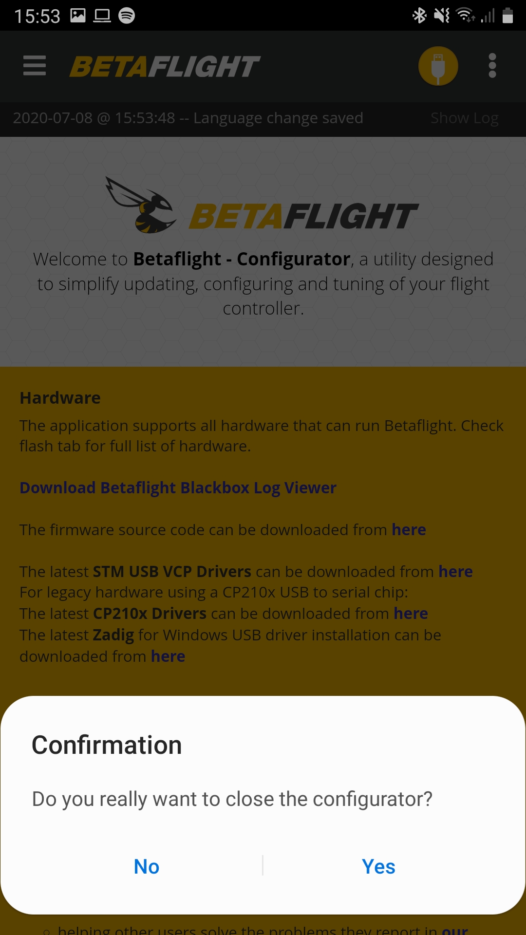 This pull request adds a warning message when the user press the return button of the device (#2100).