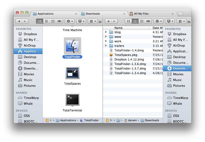TotalFinder is a plugin for Apple's Finder.app which brings tabs, dual panels and more! This project gathers localizable resources.