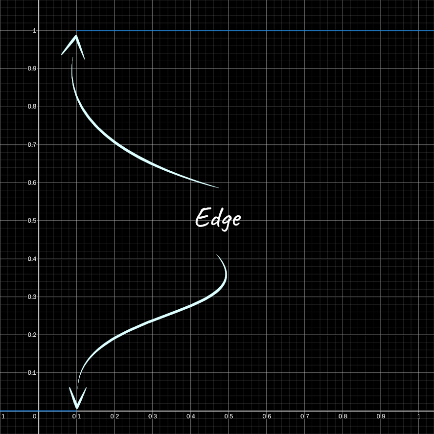 The step function returns zero if the input is less than the edge and one otherwise.