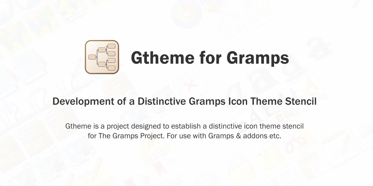 Gtheme is a project designed to establish a distinctive icon stencil theme for The Gramps Project.