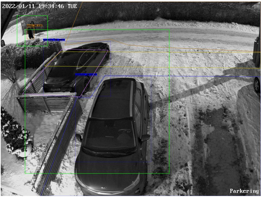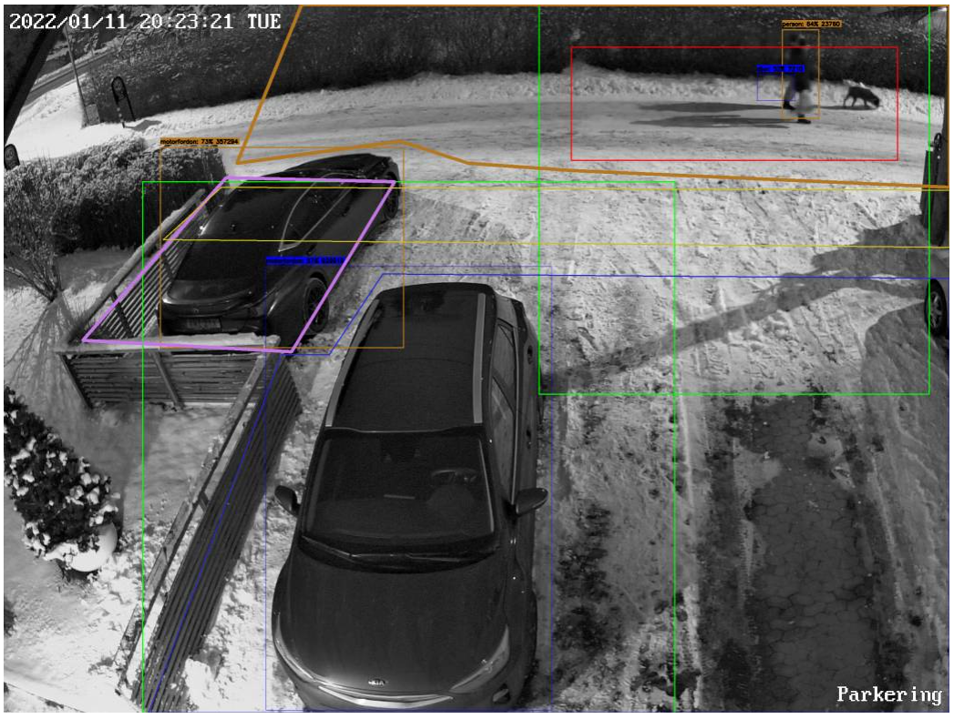 As seen in the picture below a person is walking in the "street_area" and triggers both the "yellow" (parking_entrace) and "blue" (parking_area) ....