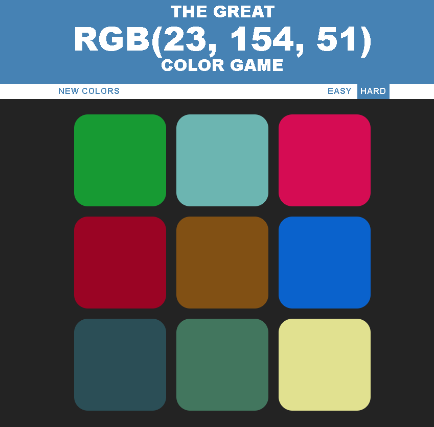 This is a little fun JS game I game I made while following this BootCamp course. The goal of the game is to test your RBG color knowledge.
