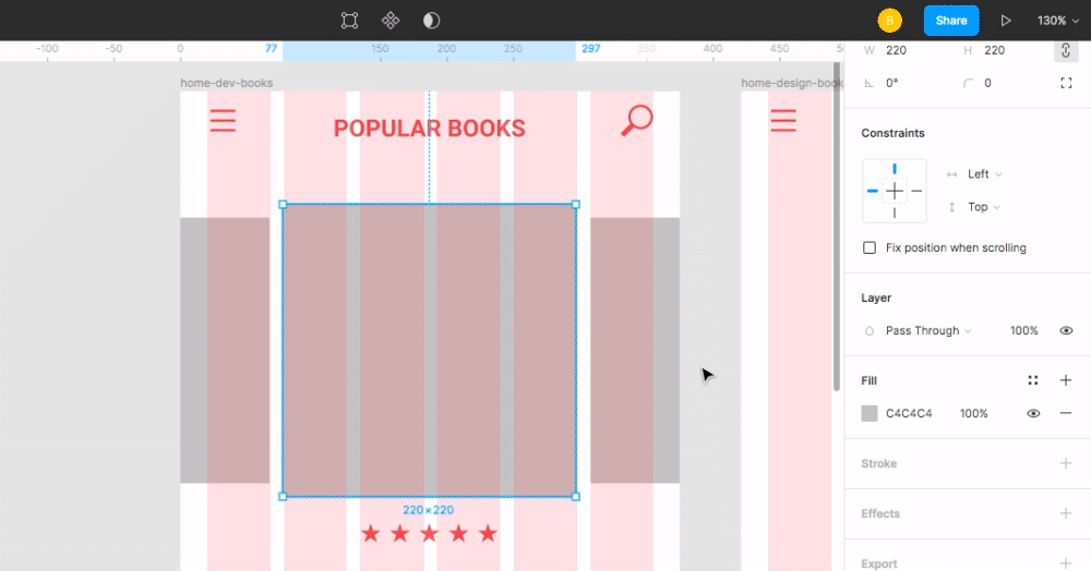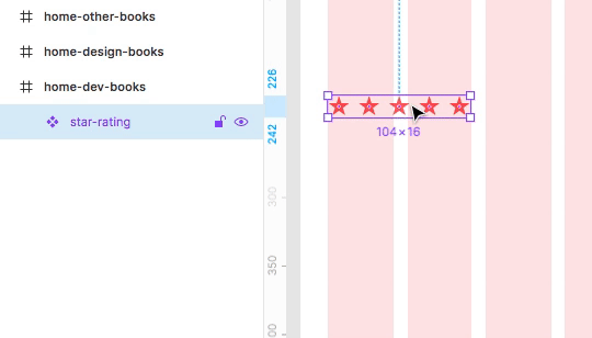 Copy the star-rating group over to our other frames. Center them horizontally and vertically.