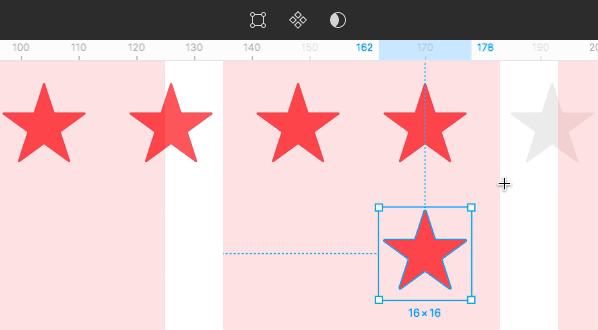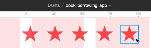 - Move the half star on top of the fifth star. Positioning the half star exactly on top can be fiddly - to get pixel perfect placement, you have to make sure you select both elements inside the subtraction group (hold Shift + click to select multiple ones) before placing it.