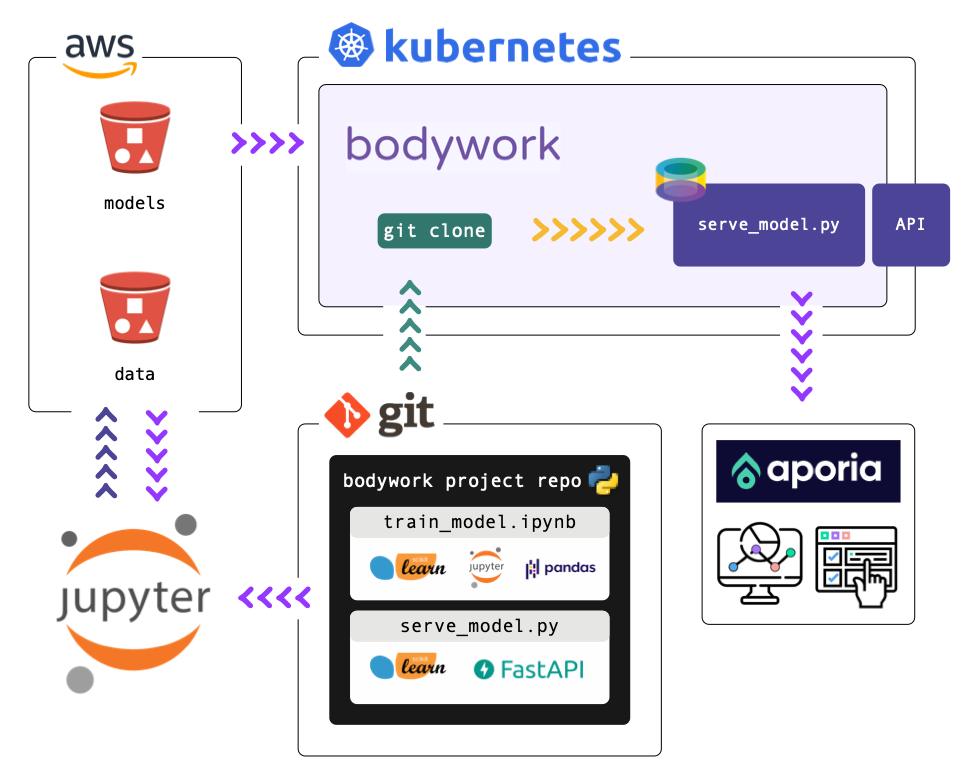 This repository demonstrates how to integrate Aporia's ML model monitoring service into a Bodywork serving pipeline. The steps for engineering the pipeline are: