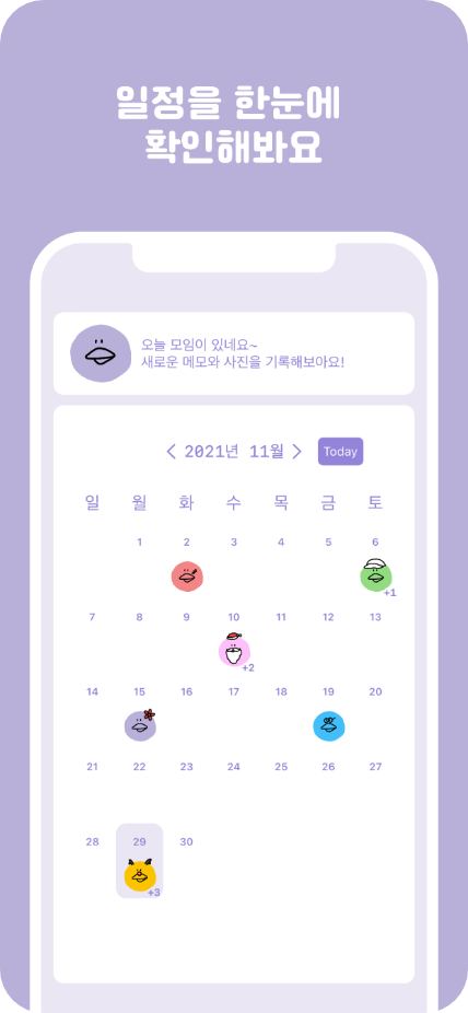 μΉκ΅¬λ€κ³Όμ μΌμ κ³Ό μΆμ΅μ μΊλ¦ν°μ ν¨κ» κΈ°λ‘ν΄ κ΄λ¦¬ν μ μλ μλΉμ€