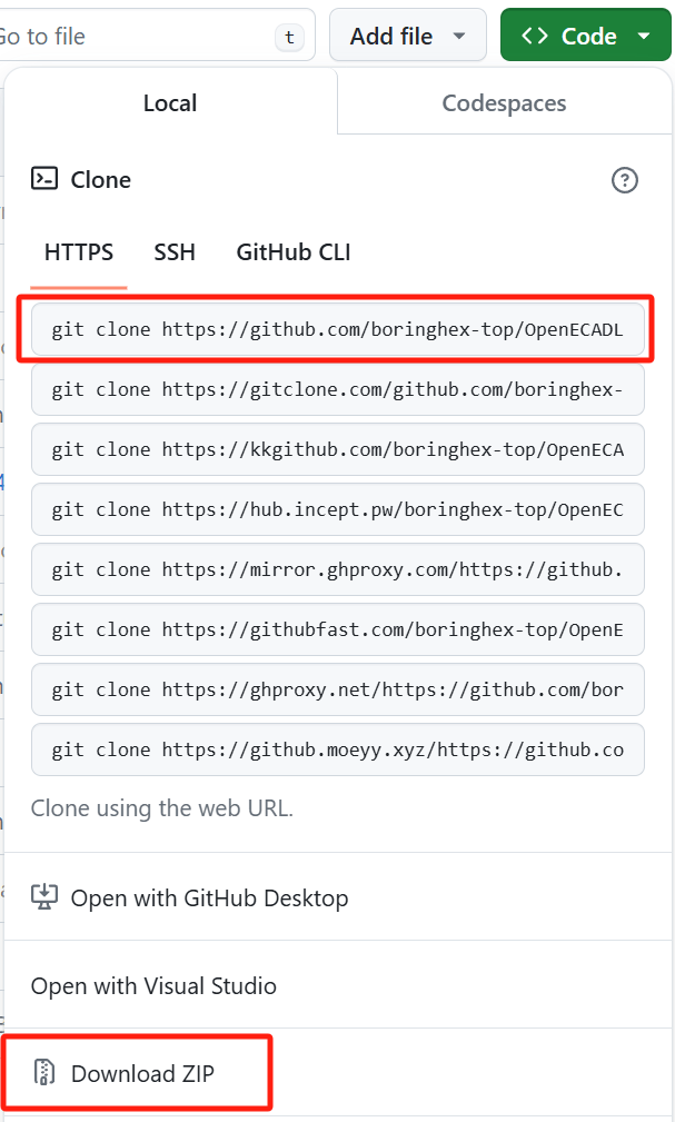 git clone https://github.boringhex.top/github.com/boringhex-top/OpenECADLib.git当然也可以用上面截图中的加速器。