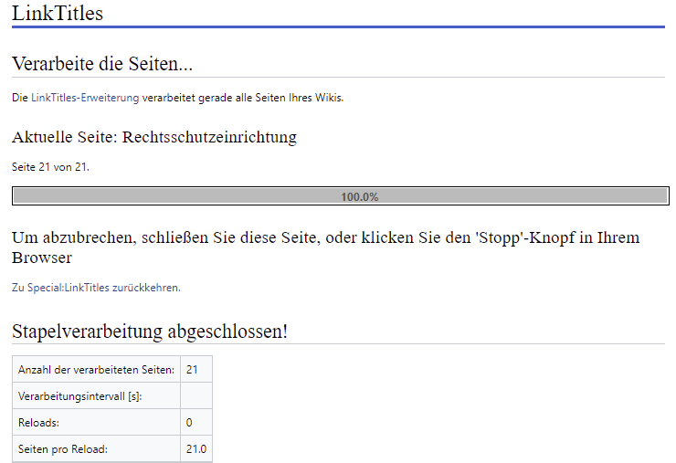 Im Bild erkennbar ist, dass die Erweiterung installiert ist, aber die Seite zeigt mir direkt 100% an und die selbe "aktuelle Seite" an, ohne das dabei Wörter verlinkt wurden.