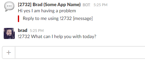As more than one user could be in the support channel at a time, messages to users of this interface are filtered, requiring you to specify a unique id at the beginning of your message in Slack.