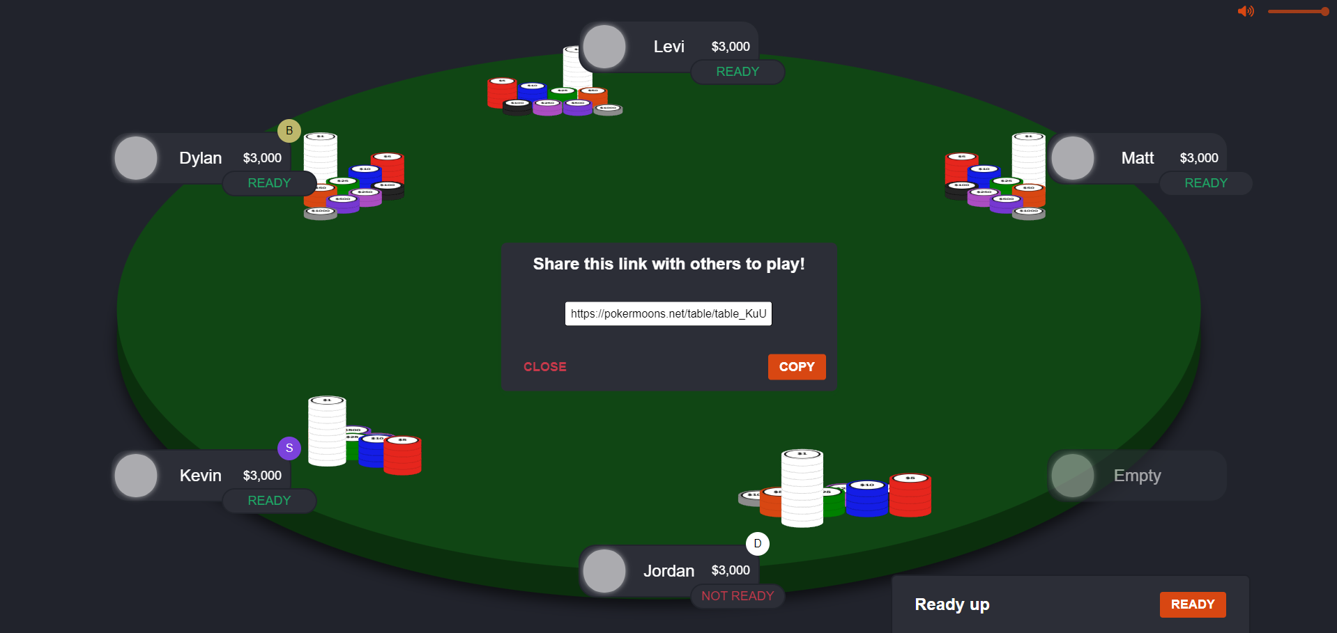 G-1: As a user I’m able to create a unlisted instance of a game, and share it with my friendsG-2: Once at least two people have joined the table the game may be started