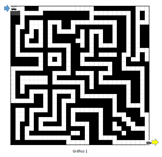 La cuadricula que se muestra en el grafico 1 es una cuadricula de 30 x 30, en la cual se muestra un laberinto y donde se debe considerar: