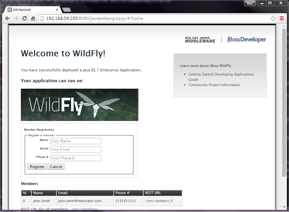 6. And test the app via your browser http://192.168.99.100:8080/javaee6angularjs