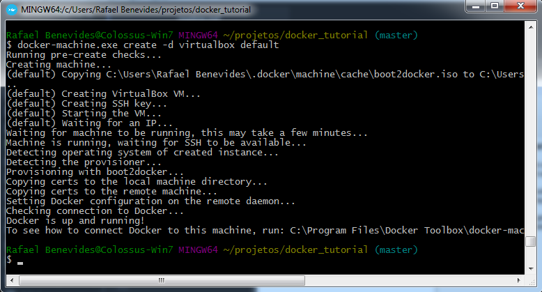 1. If you remember way back to ls /c/Users/<your_username>/demo, the Users directory on your Windows host is shared with the docker default host (thanks to VirtualBox Guest Additions). In your home directory, create a directory called docker_projects that is a sibling of demo. You can create the directory from within the docker-machine host default with the following command (or just use File Explorer).