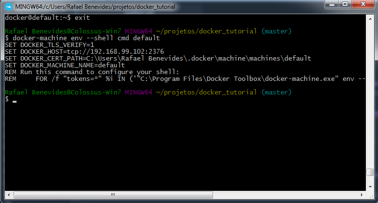 2. You might also execute docker-machine commands from the Windows (DOS) Command Prompt aka "cmd.exe" and type