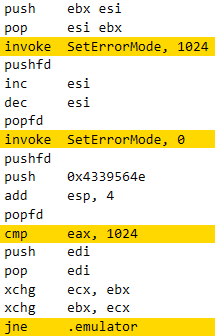 Assembly code is obfuscated by nop-like instructions intermingled with the actual code, such as an increment followed by a decrement. Strings are not stored in the data section, but instead constructed on the stack using mov-opcodes.