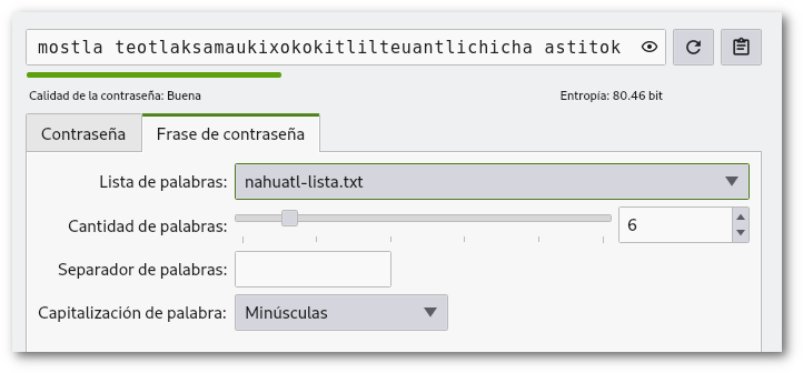 será la unica vez que realices este cambio, la próxima vez que quieras crear una contraseña con frases estará seleccionado el idioma nahuatl.
