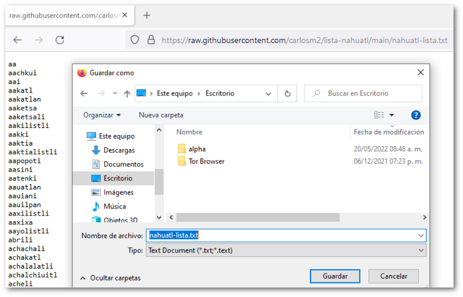 wget https://raw.githubusercontent.com/carlosm2/lista-nahuatl/main/nahuatl-lista.txt