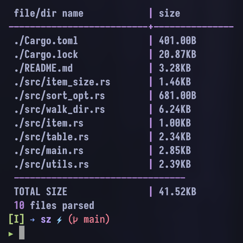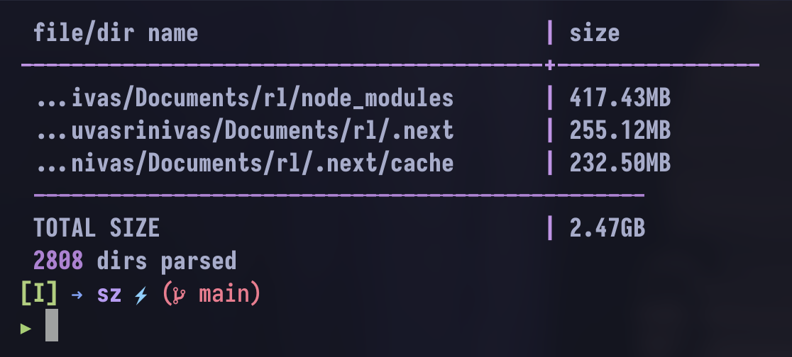 sz . -l -i -g -n 30 # show me the first 30 itemssz . -l -i -g -L # show me all the files- you can also sort the items based on size using the