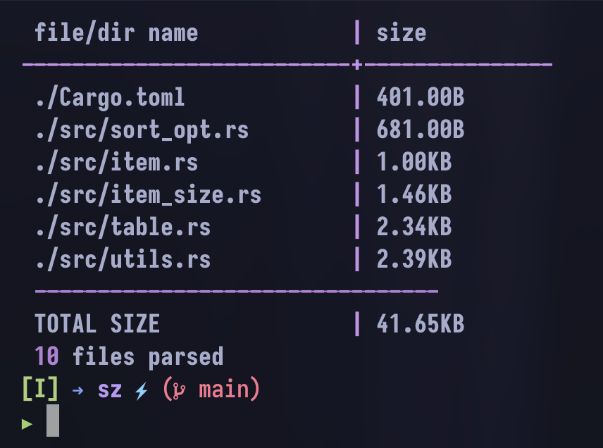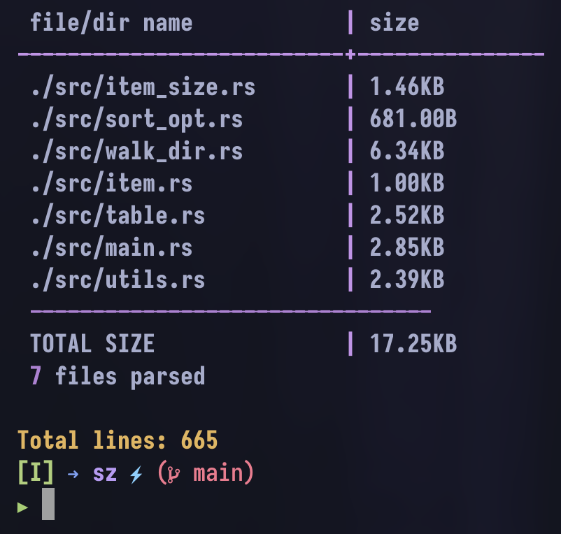 sz ./src -l -sThe options are pretty simple yet powerful: