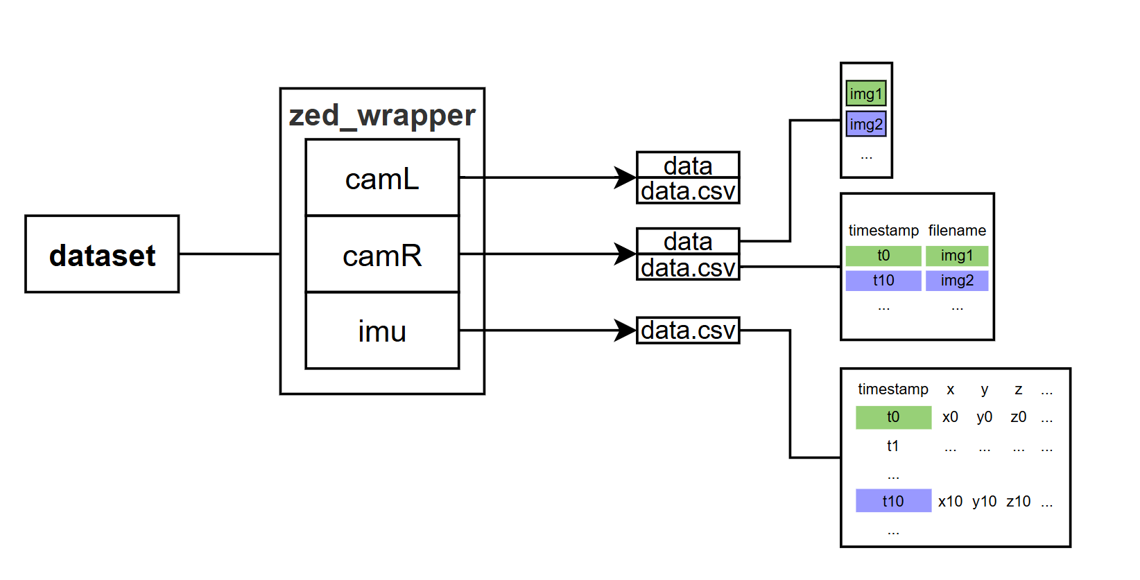 Subscribe to the zed_wrapper node, synchronized the messages using sync_saver, and saved them to create a dataset.