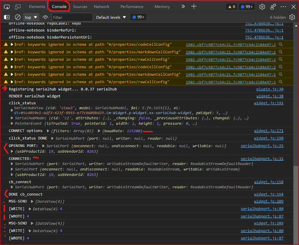 There should be a flag or log-level setting (perhaps defaulting to false/"errors-only") to control the console.log message generated by SerialHub front-end (controllable by back-end).
