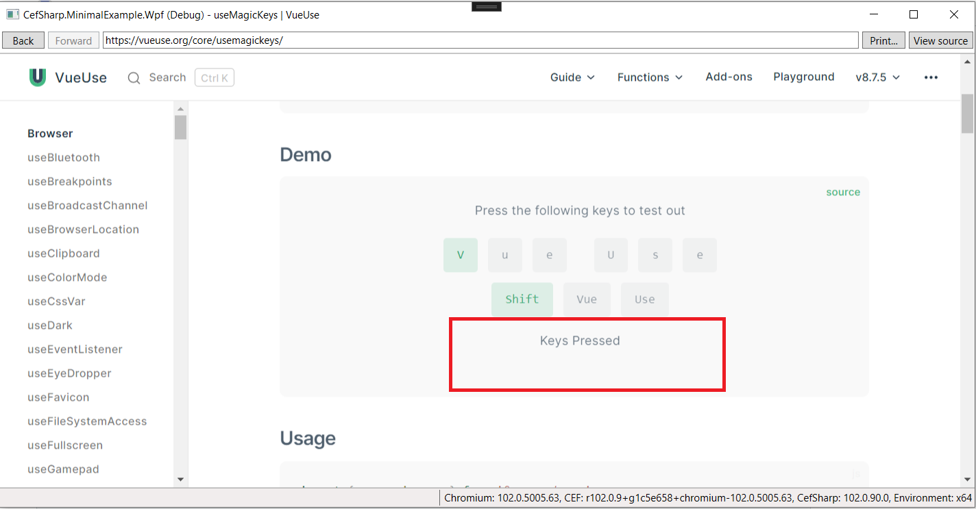 we have hosted website inside WPF application using CefSharp 85 and it seems keyboard shortcuts of that websites are not working. e.g = to zoom.