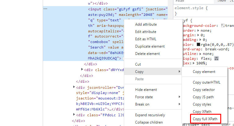 How can I programmatically get this xpath: I know I can use OnFrameLoadEnd to hook onmouseup , where I can add my own custom logic to build xpath based on element clicked and than via CefSharp.PostMessage send it to OnBrowserJavascriptMessageReceived . However is there a way to get that particular xpath I'm getting through devtools? |