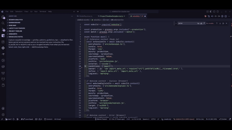 AI coding agents are powerful but opaque — tokens burn silently, context fills up without warning, and everything is lost when a session ends. Sidekick gives you visibility into what your agent is doing, AI features that eliminate mechanical coding work, and session intelligence that preserves context across sessions. Works with your existing Claude Max subscription, Claude API, OpenCode, or Codex CLI.