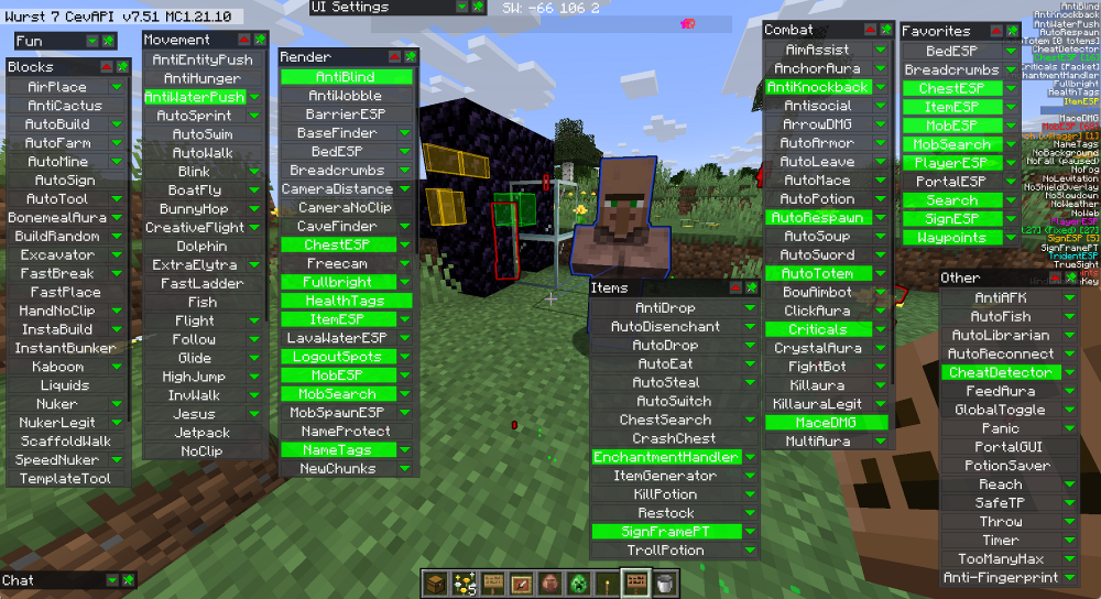- Feature list: https://www.wurstclient.net/