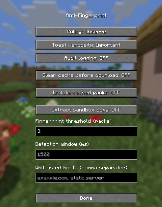 - Render cap and adjustable chunk radius to keep FPS down and the view unobstructive.