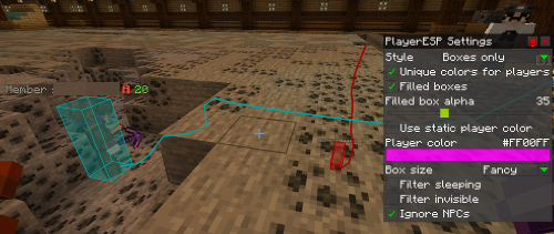 Rendering: Boxes, Lines, or Both. Tracers cancel view-bobbing.