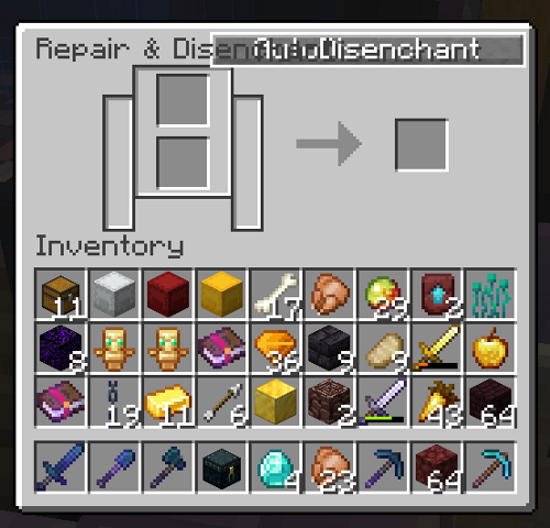 - Feeds items from your inventory (and or hotbar) that can be disenchanted into the grindstone automatically.