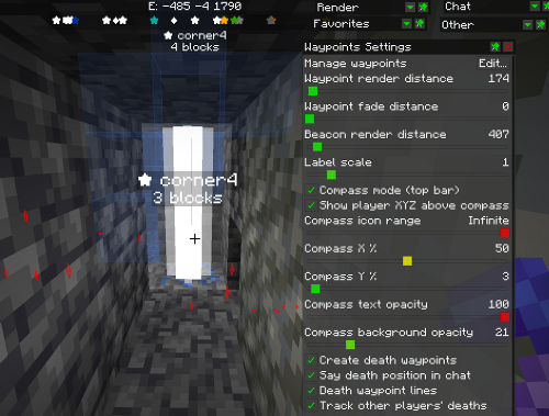 .waypointsor apostrophe key). - Compass overlay: Show a bar at the top of the screen that shows the waypoint icons in your field of view