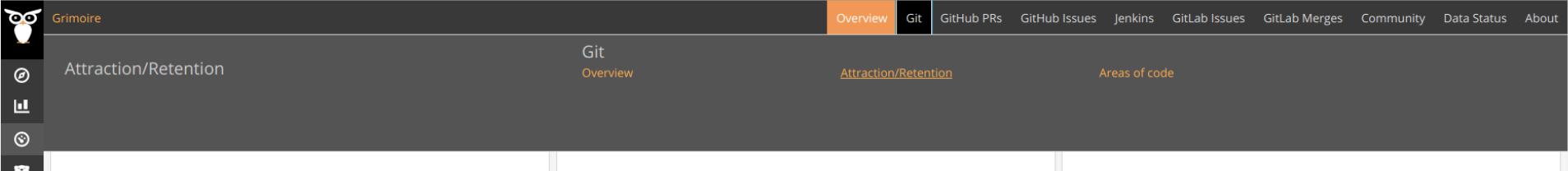 This menu allows you to navigate through the GrimoireLab panels, see its structure below: