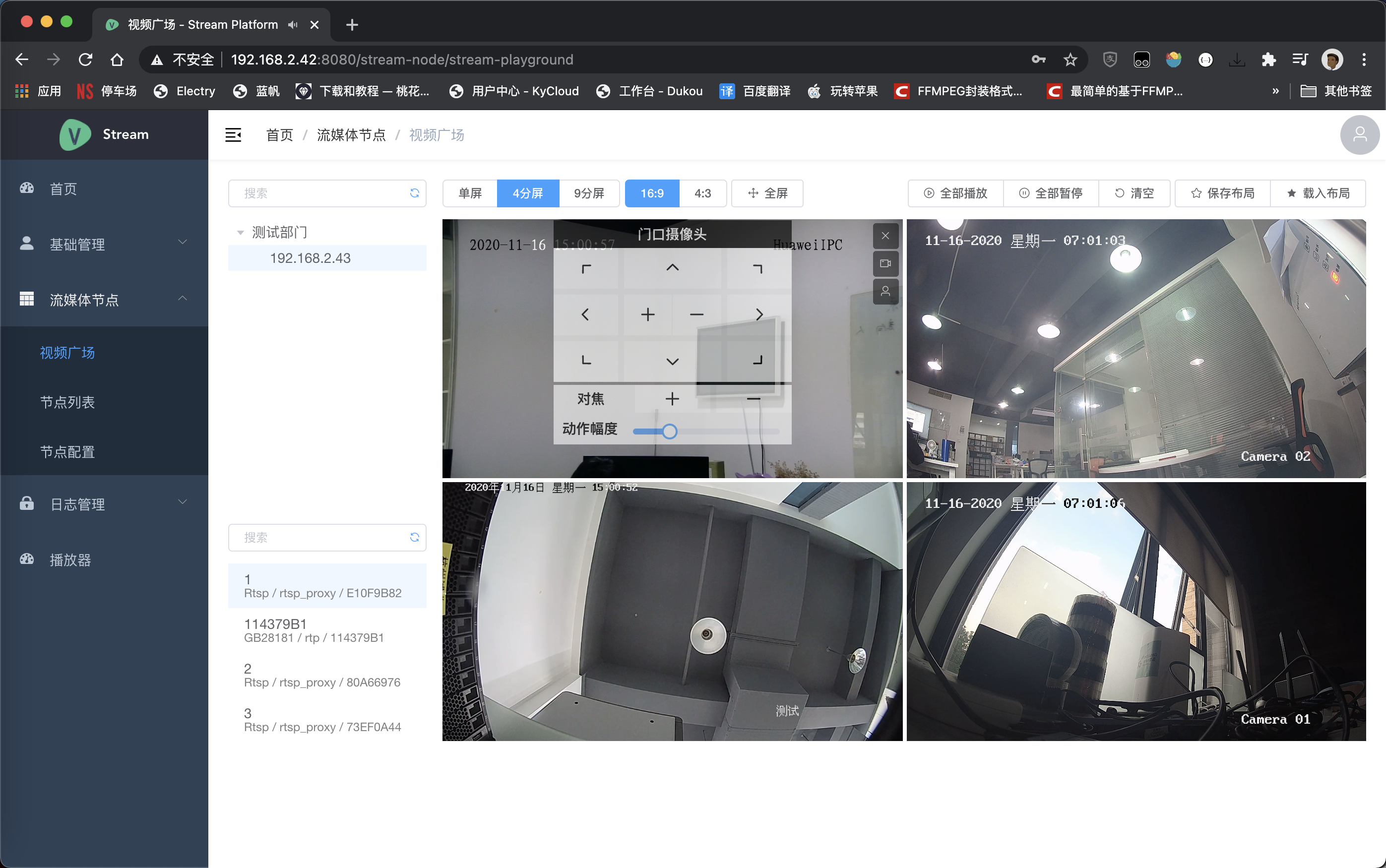 - 本项目是基于ZLMediaKit的流媒体控制管理接口平台,支持RTSP,GB28181的设备拉流与推流控制,GB28181部分支持PTZ控制。
